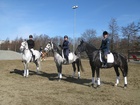 Helena pyöritti liinassa Ellua, joka oli viisivuotiaan Kamun selässä. Mirka ratsasti ja esitteli ylvästä Onnia. Kolmantena oli vielä José ja Murtsi, jotka tyylittelivät passagea, piaffia ja väistöjä. Taustalla pyöri vielä PowerPoint show, jossa oli kuvia hevosista, tallista ja maastosta. Ihan tuli iho kanalihalle. Kiitokset myös Onnin ja Murtsin omistajille Merja Tyynille ja Petra Nowakille!